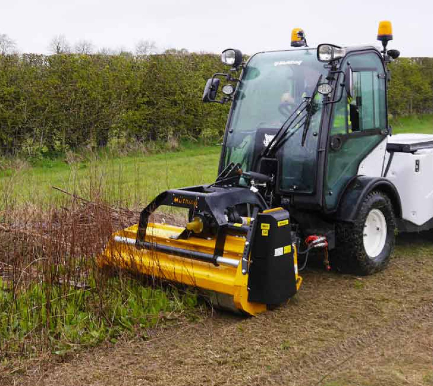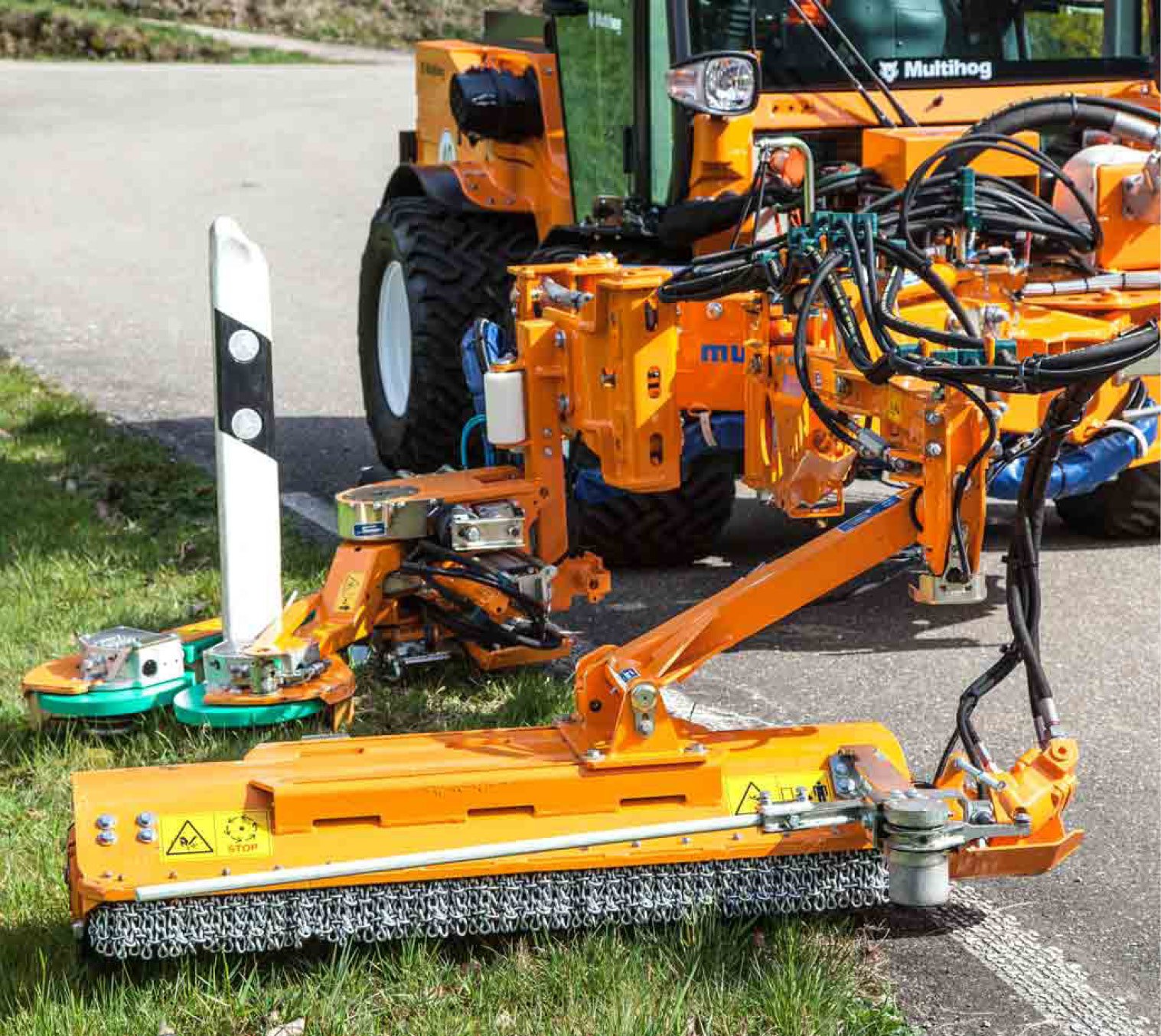 Designed for mowing around barriers, guardrails, and traffic signs. Operated from the cabin, it ensures safety, adapts to terrain, and improves efficiency for roadside maintenance.